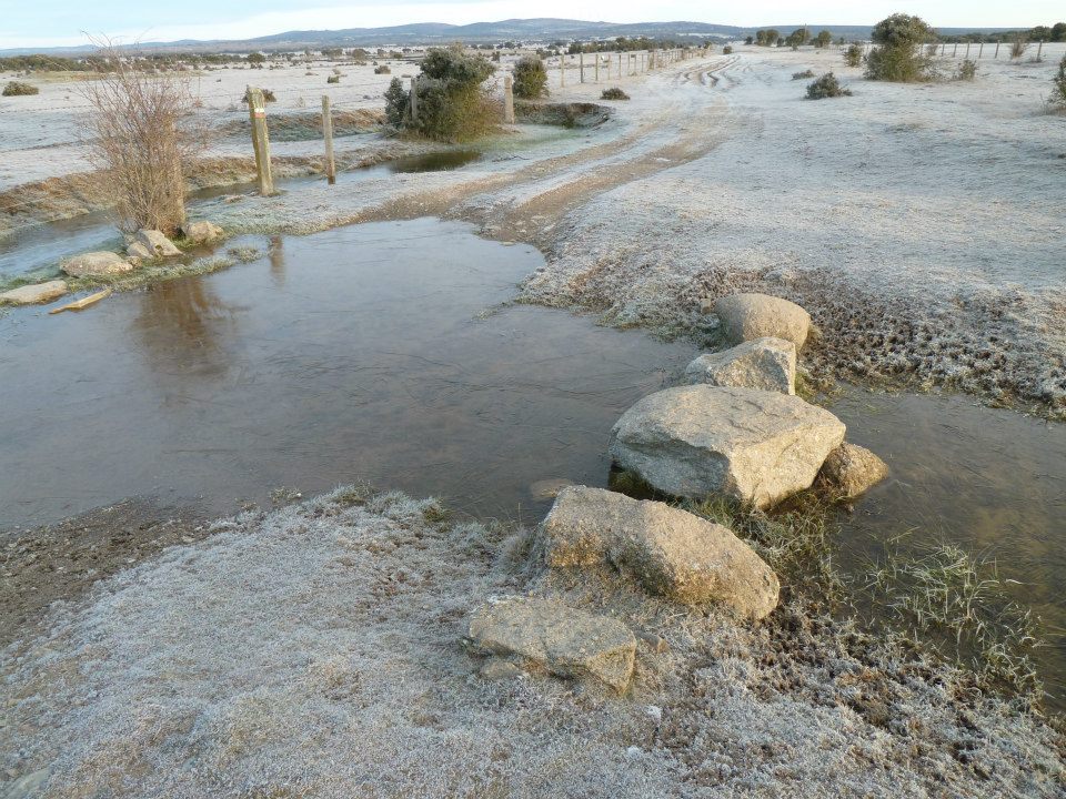 Parfois, mais pas toujours, il y quelques pierres pour aider à traverser. Vaut mieux pas glisser car la fine couche de glace ne résisterait pas à mon poids ... à cause du sac bien entendu !